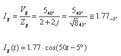 La impedancia equivalente Zab del siguiente circuito con Ig(t) = 2·sen(200t + 30º) (A) vale: Donde L = 5 mH; C = 1mF |