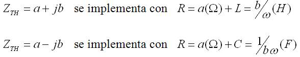 Una vez calculada la impedancia resultante Thevenin (o Norton) esta se implementará mediante una resistencia en serie con, una bobina si la parte compleja de esa impedancia tiene signo positivo, o un condensador si tiene signo negativo.