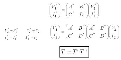 Por tanto, solo es necesario multiplicar las matrices de parámetros de transmisión de cada cuadripolo aislado.